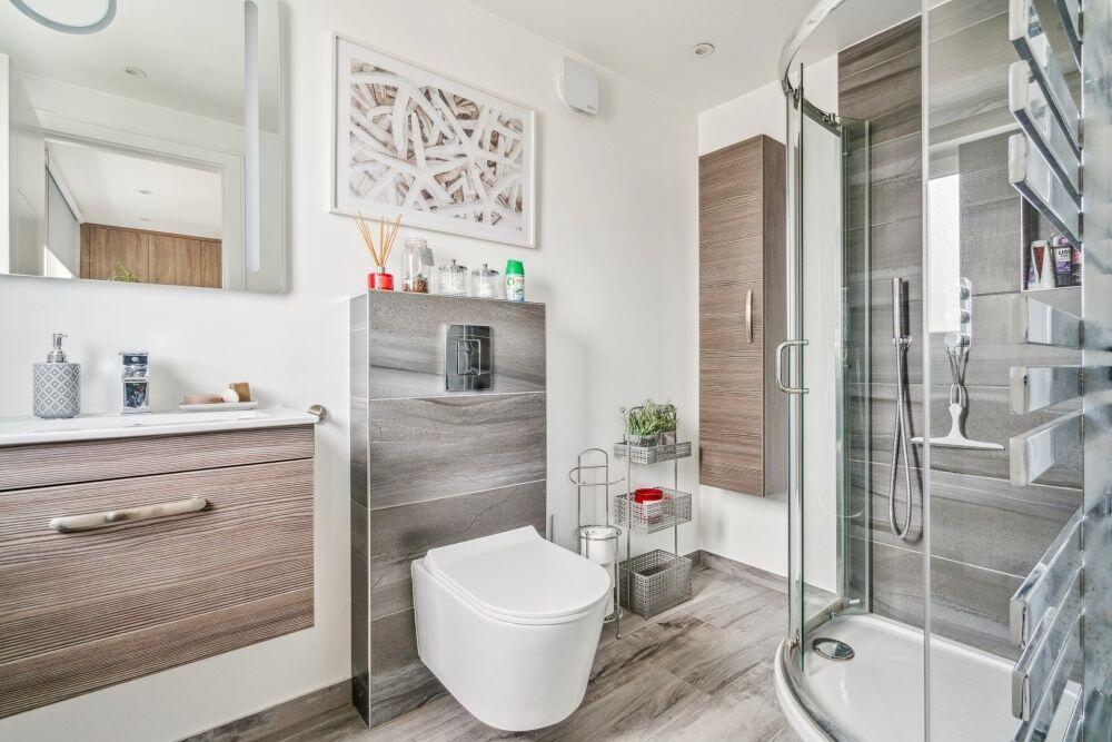 Based on the provided images, the property appears to be in excellent condition. It has undergone a significant modernisation, featuring a contemporary kitchen and bathrooms. There is no visible evidence of disrepair or the need for renovation. The property benefits from a well-maintained garden and patio area.