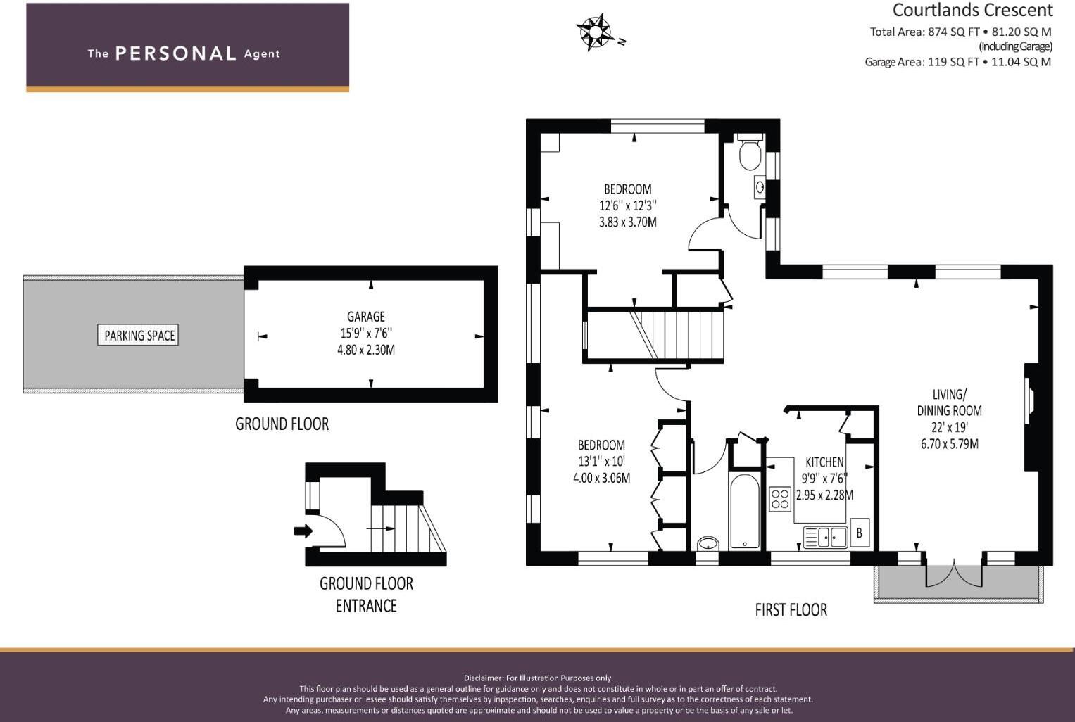 The Personal Agent are delighted to offer for sale this 874 sq ft two bedroom first floor maisonette. The property benefits from a south facing garden and a garage with a driveway for two cars. Other benefits include a separate kitchen and a L-shaped lounge/dining room.