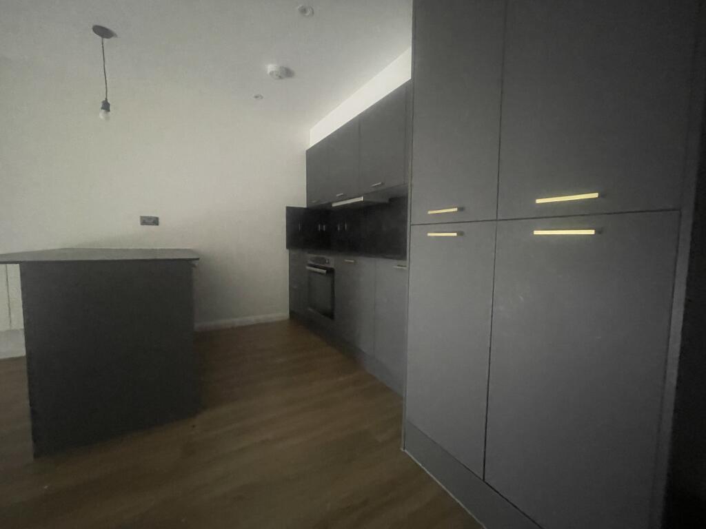 Spacious 1-bed unfurnished apartment at Bishopgate Gardens, Preston. Features a bright open-plan living area, modern kitchen with washing machine, stylish bathroom, and double bedroom with fitted blinds. Residents enjoy access to concierge, rooftop terrace, and lounge.