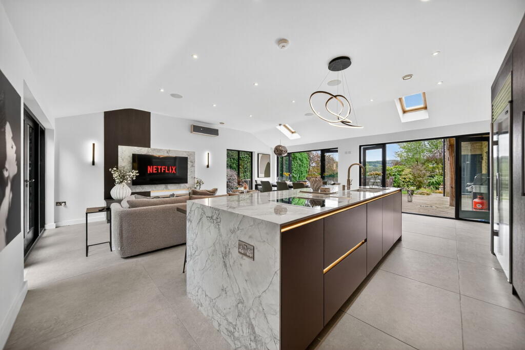 Midway, located on Pinfold Lane in Mirfield, is a substantial detached property featuring five bedrooms and three bathrooms. The house spans 3,204.58 sqft and is listed for £1,200,000. The property is in a desirable location, close to well-regarded schools and amenities. The house is in excellent condition, with modern interiors and a well-maintained exterior. It also benefits from a good-sized garden. The property includes notable features such as a modern kitchen, stylish bathrooms, and a home gym. The price per square foot is higher than the local average, reflecting the property’s superior condition and features.