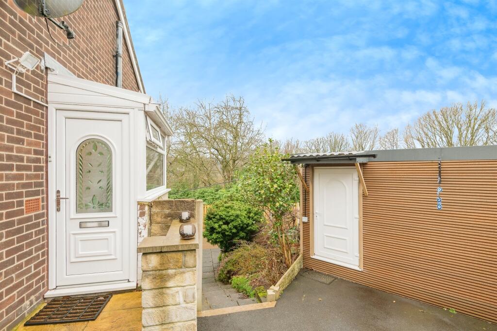 A two bedroom semi-detached bungalow located in a popular Horsforth location, close to local amenities and good transport links. The home benefits from a generous driveway, low maintenance garden backing onto woodland and a separate garden room. There is also a useful cellar.