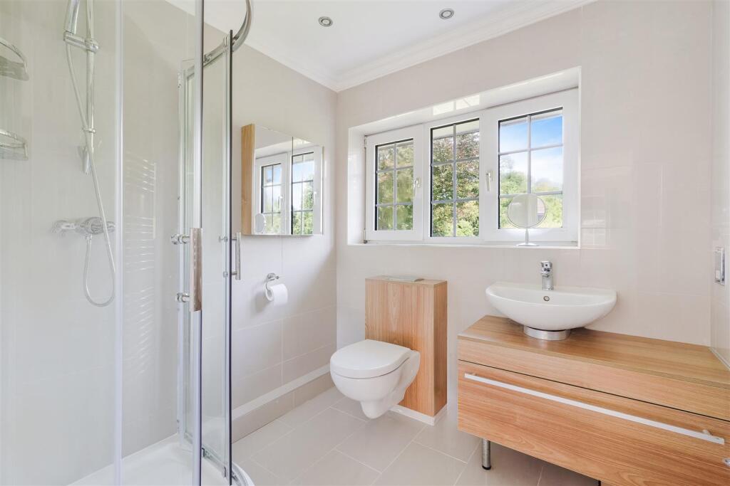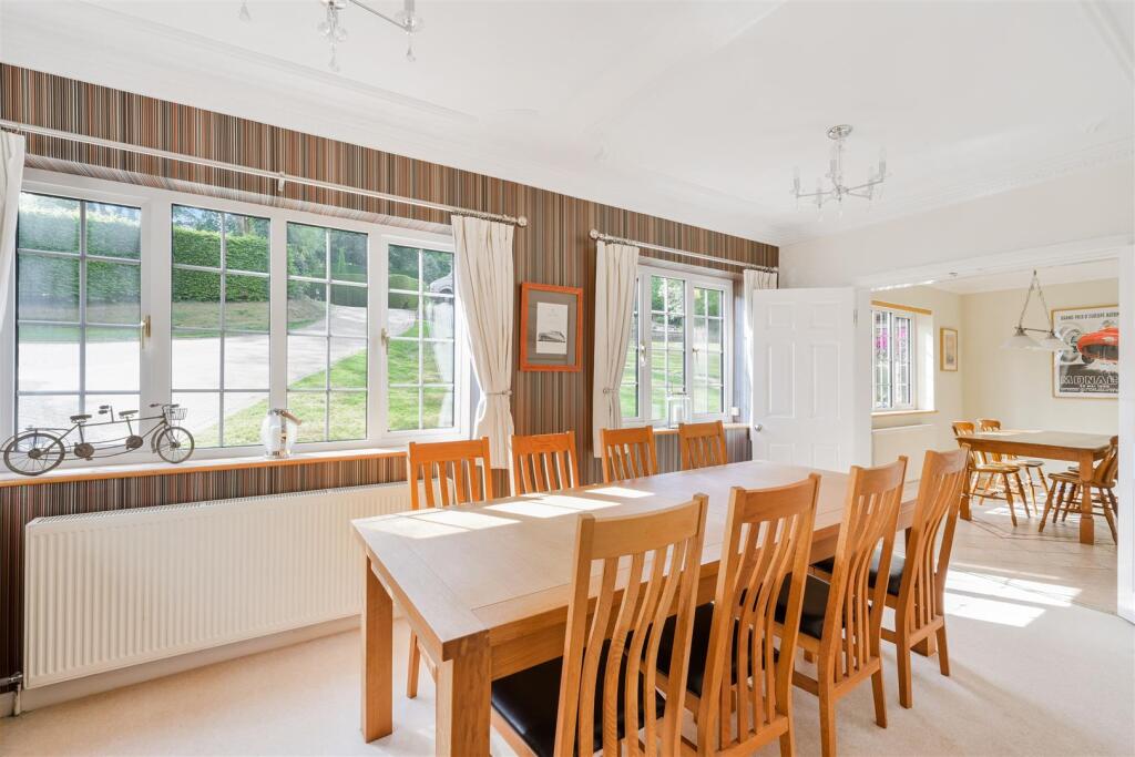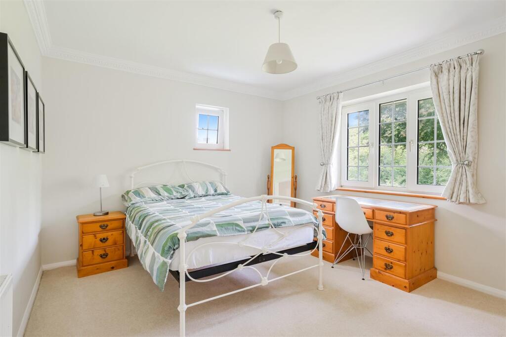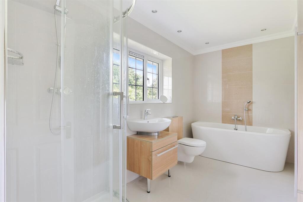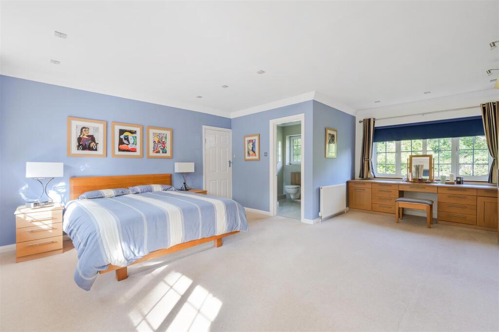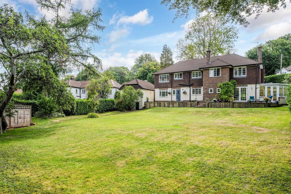 Individually designed and beautifully presented, this detached family house is set on a spacious garden plot approaching half an acre. The house has an impressive 120’ frontage onto this private avenue, just a few minutes’ walk of the village and station.