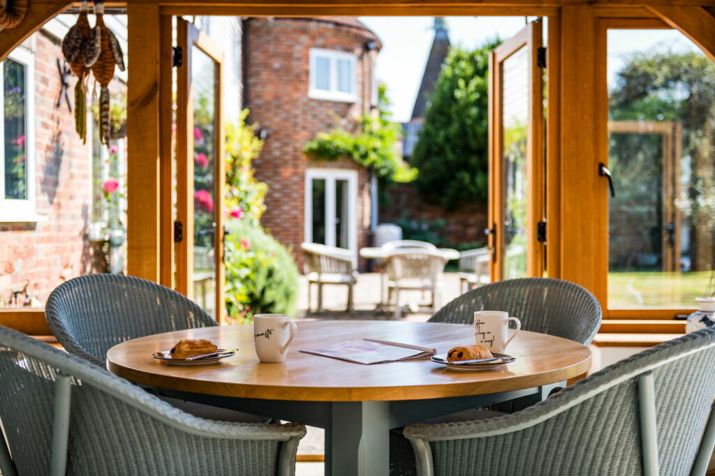 Chain Free - Set within the serene landscape of the Kent countryside, this unique detached home effortlessly blends the charm of its 19th-century origins with modern living. Originally serving as a barn with two characteristic oast roundels, this property was transformed into a residence in 19...