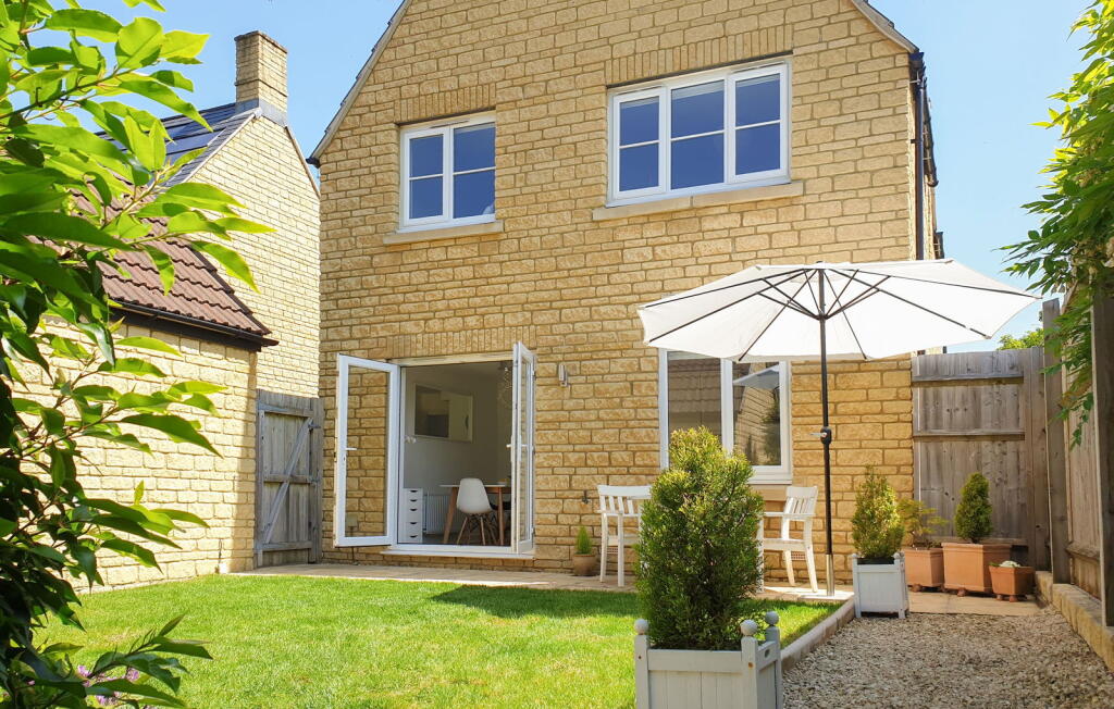 Occupying a lovely position with a sunny rear garden, this Cotswold stone detached 3 bedroom house is immaculately presented.
