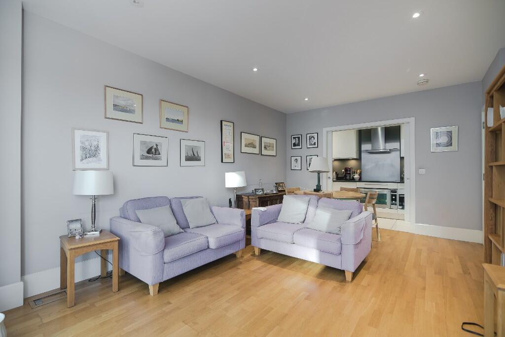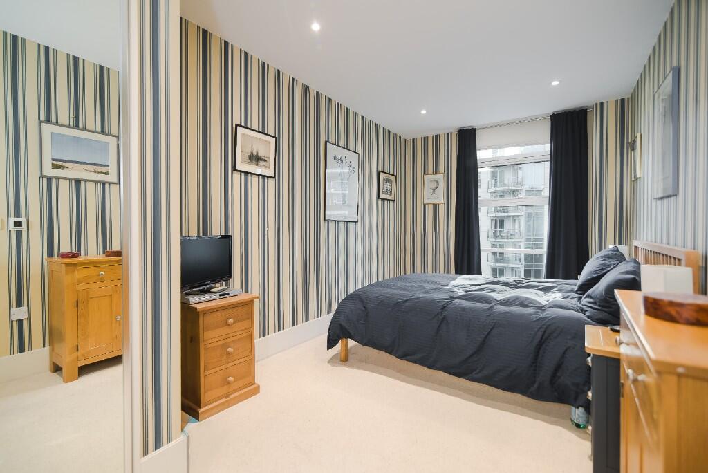A stylish two-bedroom riverside apartment, featuring a private balcony with views of the Thames and set within a sought-after development with concierge and residents' amenities