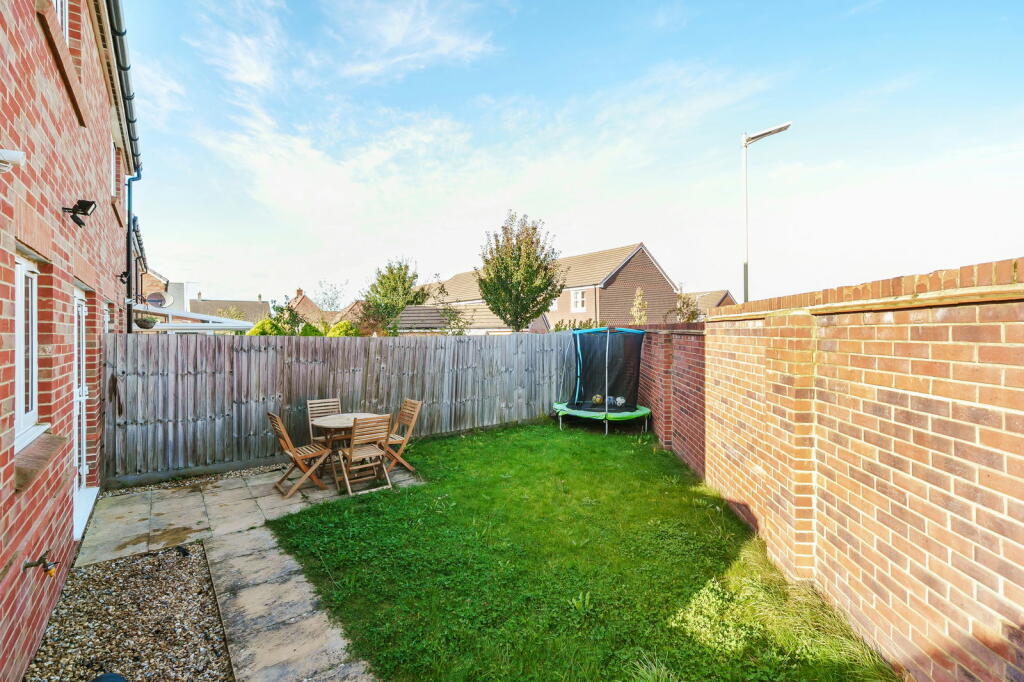 This property is a two-bedroom, two-bathroom house located in Andover, Hampshire. Based on the images provided, the property appears to be in good condition and well-maintained. The kitchen and bathrooms are modern and clean. The property has a small, manageable garden, suitable for those who want some outdoor space without extensive maintenance. The location within the Picket Twenty development suggests a relatively new build area, potentially offering benefits such as modern amenities and a sense of community. However, the plot size is very small. The list price of £285,000 is lower than the average price for the area (£370,956), but this may be due to the smaller size of the property (470.60 sqft) compared to the average (968 sqft). Considering the overall condition, location, and land, the price may represent reasonable value, especially for a first-time buyer or someone seeking a low-maintenance property in a convenient location. More information on comparable properties in the immediate vicinity would help to further refine this assessment.