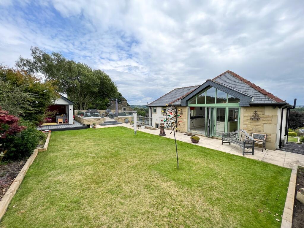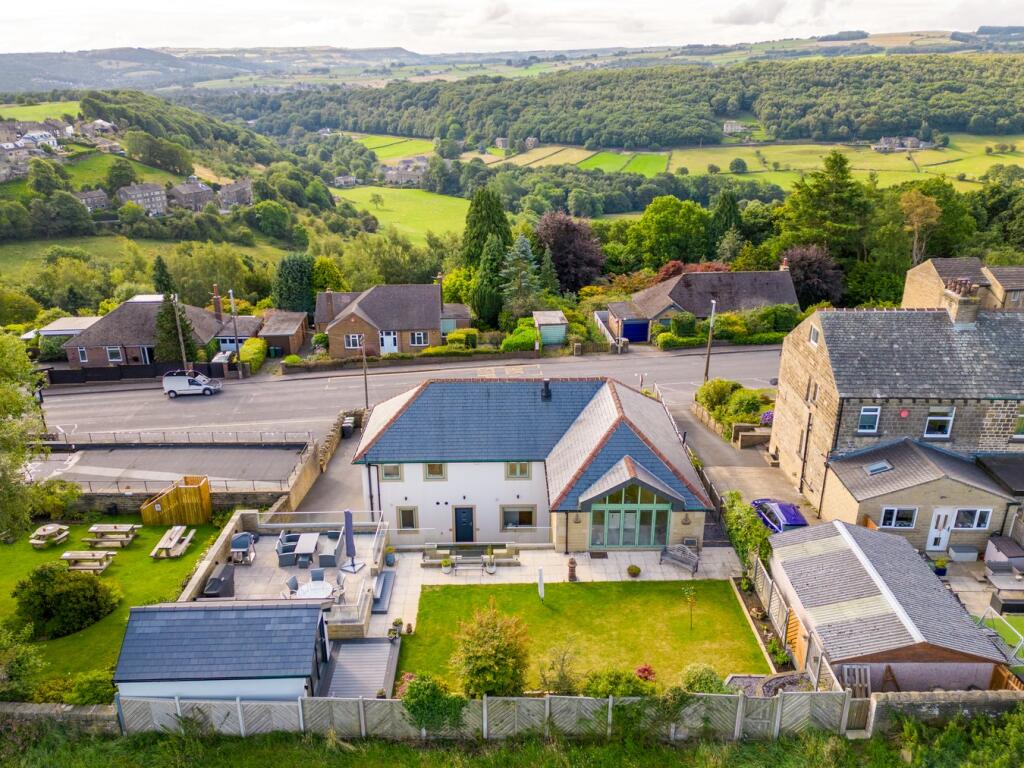 An outstanding, individual detached house situated between the semi rural villages of South Crosland and Netherton. A highly convenient location with far reaching views at the front, and boasting a unique and impressive interior.