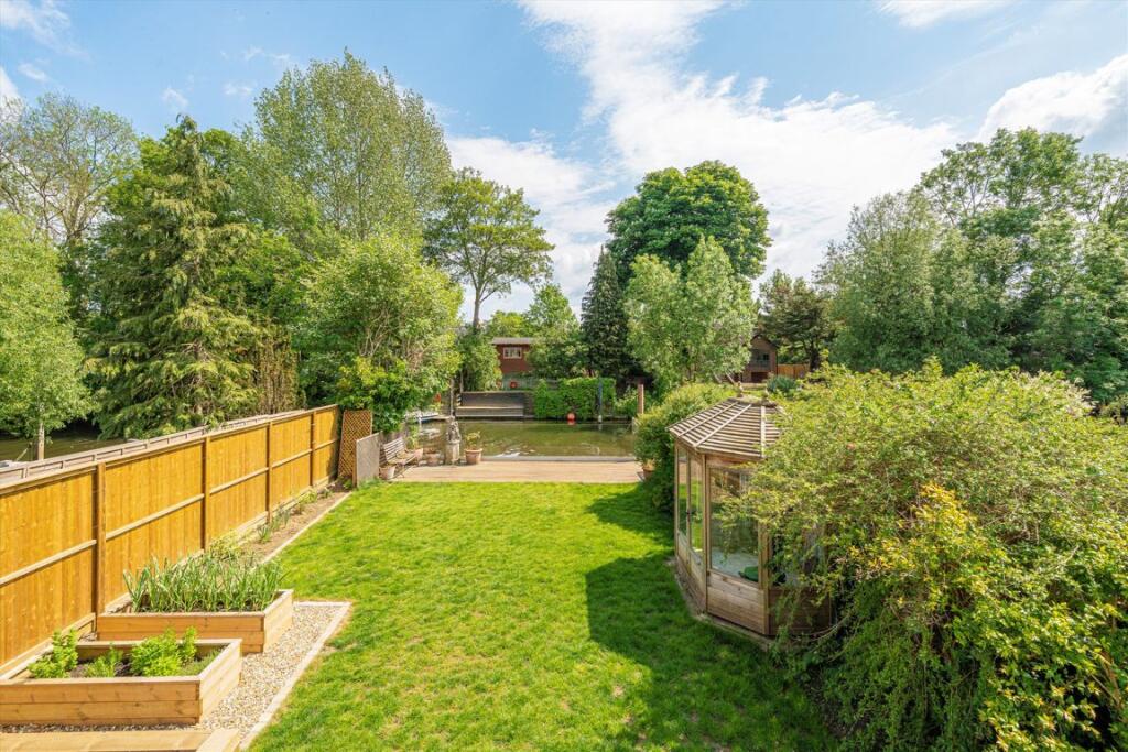 Ocated on a quiet private road in the heart of Sunbury-on-Thames, this stunningly renovated three-bedroom, three-bathroom detached home offers luxurious riverside living. Set directly on the River Thames, it features its own mooring, beautifully landscaped gardens, and elegant interiors filled wi...