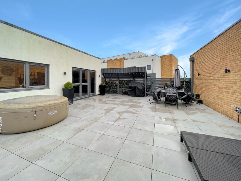 This property is a stunning two bedroom apartment located in Luton. The apartment is finished to a high standard, with modern fixtures and fittings throughout. The open plan living area is spacious and bright, with plenty of natural light. The kitchen is well-equipped, and the two bathrooms are modern and clean. The property also benefits from a large private roof terrace, perfect for entertaining or relaxing. The location is convenient, with easy access to local amenities and transport links. There are a number of schools nearby, including The Stockwood Park Academy and St Margaret Of Scotland Catholic Primary School. Luton town centre is also within easy reach, offering a wide range of shops, restaurants, and entertainment venues. Given the high-quality finish, desirable location, and ample outdoor space, the asking price seems reasonable.