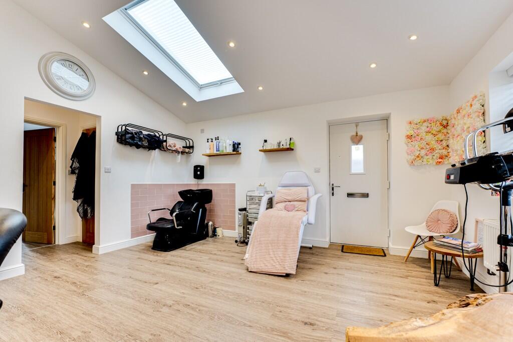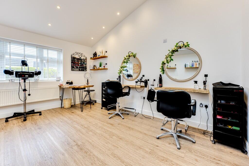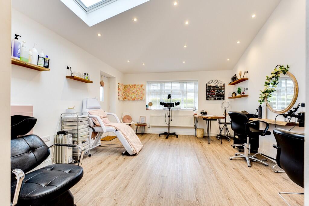 The property is a 3-bedroom, 1-bathroom detached house located in Kettering, Northamptonshire. It benefits from being close to several schools, with Millbrook Infant and Junior Schools and Kingsley Special Academy all rated as Outstanding or Good by Ofsted, all within a short distance. Kettering train station is also relatively close, providing convenient access to other areas. The images show the property to be in good condition, with a recently modernised kitchen and bathroom. There is also evidence of an extension, possibly used as a salon or home office, which adds value. The property also has a good-sized garden, adding to its appeal.