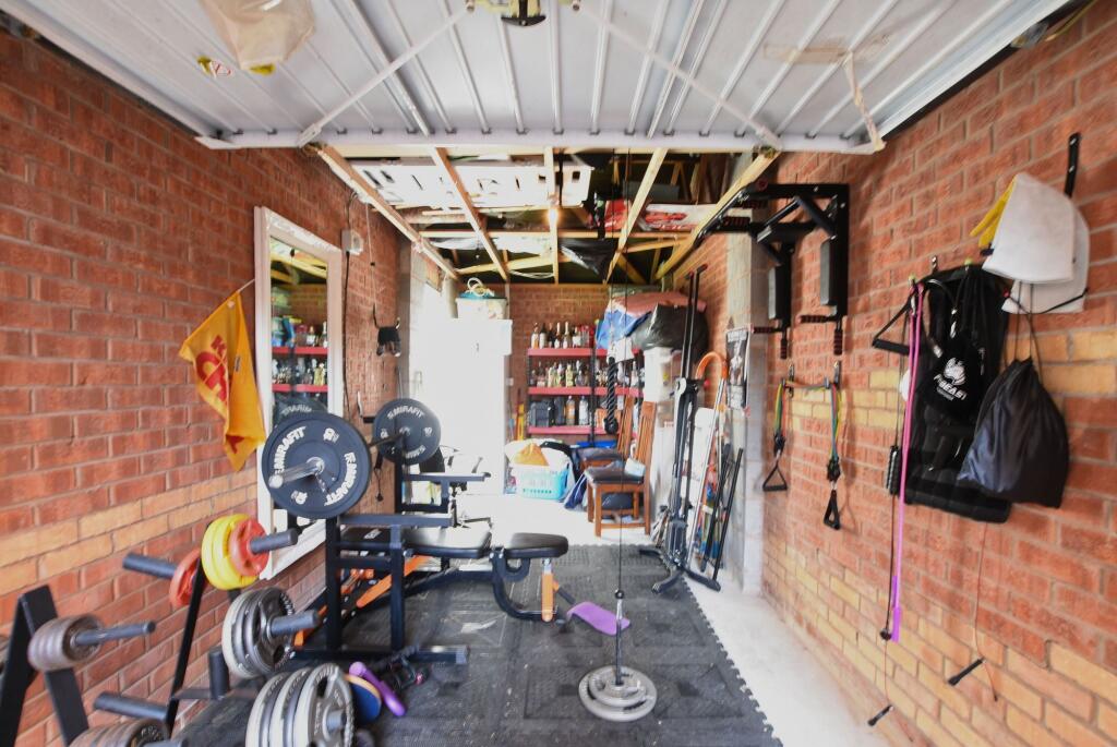 The property is a four-bedroom, two-bathroom detached house located in Bluebell Close, Oadby, Leicester. Oadby is a desirable suburb of Leicester, known for its good schools and family-friendly atmosphere. The proximity to Woodland Grange Primary School (0.46km) and Manor High School (1.16km), both well-regarded in the area, is a significant advantage for families. The presence of nearby transportation links, such as Leicester train station (8.82km), adds to its convenience. The property itself appears to be in good condition. The images show a modern, well-maintained interior with recently updated bathrooms and kitchen. There is no visible evidence of significant repair or renovation needs. The property also benefits from a garden, providing outdoor space. While the exact square footage isnt provided, the list price of £550,000 is slightly above the average price of £422,548 for the area. However, considering the property’s apparent good condition, desirable location, and the lack of comparable properties with complete data, the price may be justified. Further investigation into the property’s precise size and features would be needed to determine its value more accurately. The average price per sqft in the area is £402, but without the sqft of this property, no further analysis can be provided. The property includes features such as a garage which is currently being used as a gym. There is also a shed in the garden.