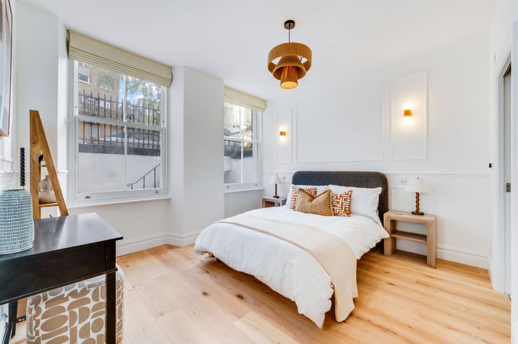 Superbly renovated two-bedroom, two-bathroom apartment spanning over 900 sq ft, complete with a private patio and access to Kensington & Chelsea's premier garden squares to.