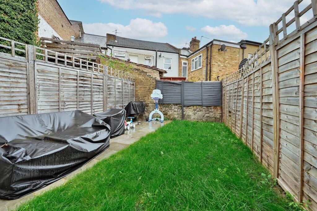 This is a two-bedroom terraced house in Watford, Central. The property is in good condition, with a modern kitchen and bathroom. It has a garden and is located close to transportation and schools. The list price is reasonable for the area. The property benefits from a fireplace and patio area.