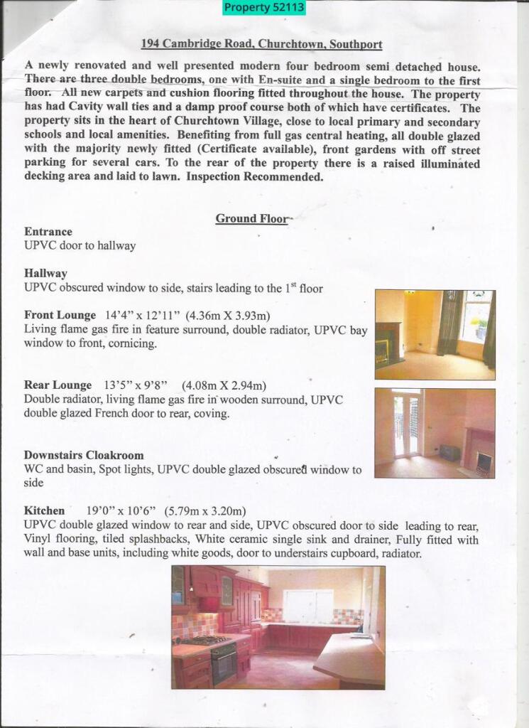 Property number 52113. A BEAUTIFUL 4 BEDROOM FAMILY HOUSE IN THE QUAINT VILLAGE OF CHURCHTOWN SOUTHPORT. NEAR TO GOOD SCHOOLS, PARKS, ALL AMENITIES, PUBLIC TRANSPORT, AND ESAY COMMUTING TO MANCHESTER, LIVERPOOL AND PRESTON