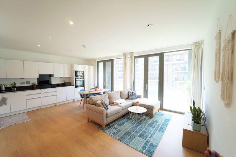 A modern and very spacious two bedroom apartment on the second floor of this purpose built block. The property has wooden floors throughout, two balconies, communal gardens and a lift. The accommodation comprises: entrance hall with storage cupboards, 20ft reception room / kitchen with doors to a...