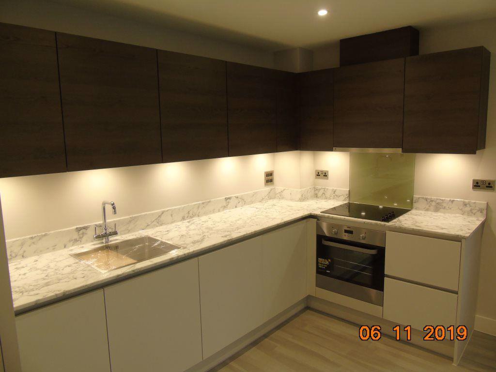 A modern two bedroom first floor apartment, with two bathrooms, secure parking and just 200 metres from the station. To be let with white goods only.