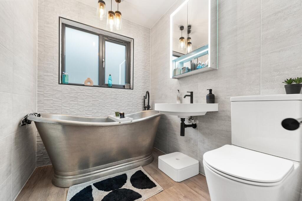 The property is a 4 bedroom detached house located in Livingston North, West Lothian. It benefits from a modern, recently renovated interior. The property is in excellent condition throughout, with a contemporary kitchen and bathrooms. The images show a modern, stylish interior with high-quality finishes. There is also a conservatory and a small garden area. The location is close to Livingston North train station, providing convenient access to public transport. While there is no information on nearby schools, the proximity to the train station suggests good access to commuting routes. The list price of £350,000 is slightly higher than the average price for the area (£228,850), but considering the property’s size (1266 sqft), modern condition, and stylish renovation, the price may be justified. The average price per sqft in the area is £243, making this property’s price per sqft slightly higher. However, the superior condition and recent renovations likely contribute to this higher price. Nearby comparable properties are limited in the provided data, making a definitive price comparison challenging. The lack of plot size information makes it difficult to assess the land score accurately.