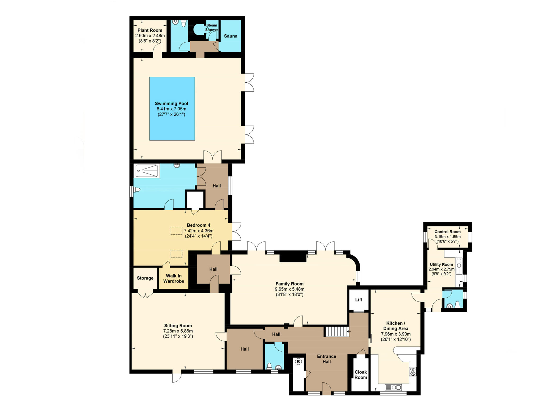 This is a substantial detached property located on Walford Road in Ross-on-Wye. The house features six bedrooms and five bathrooms, making it suitable for a large family. A standout feature is the indoor swimming pool, adding a touch of luxury. The property also boasts a large garden with a patio area, providing ample outdoor space. While generally well-maintained, some areas could benefit from cosmetic upgrades. The location is convenient for local schools, but not directly in the town center. Overall, this property offers a blend of space, features, and location that could appeal to a discerning buyer.