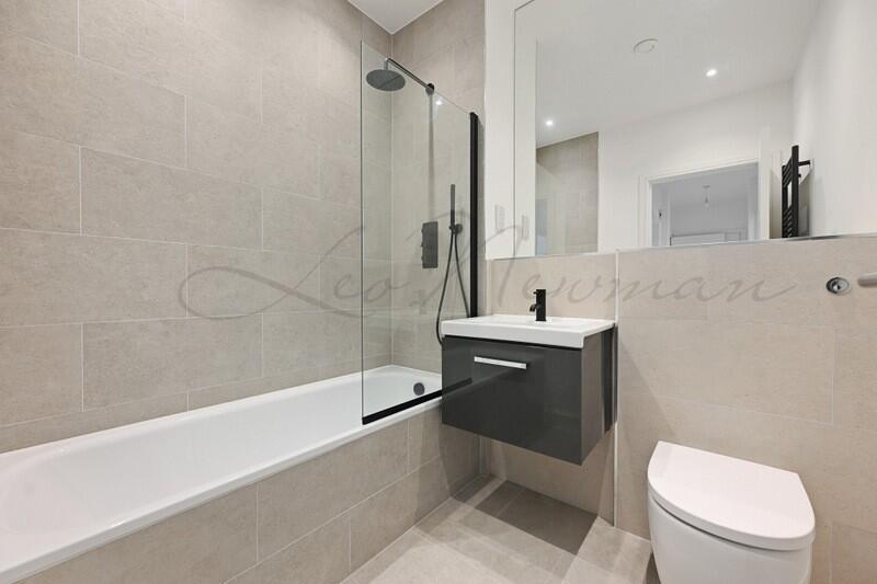 This ground floor flat offers three bedrooms, two bathrooms and a private garden, set within a new development on Caroline Street.