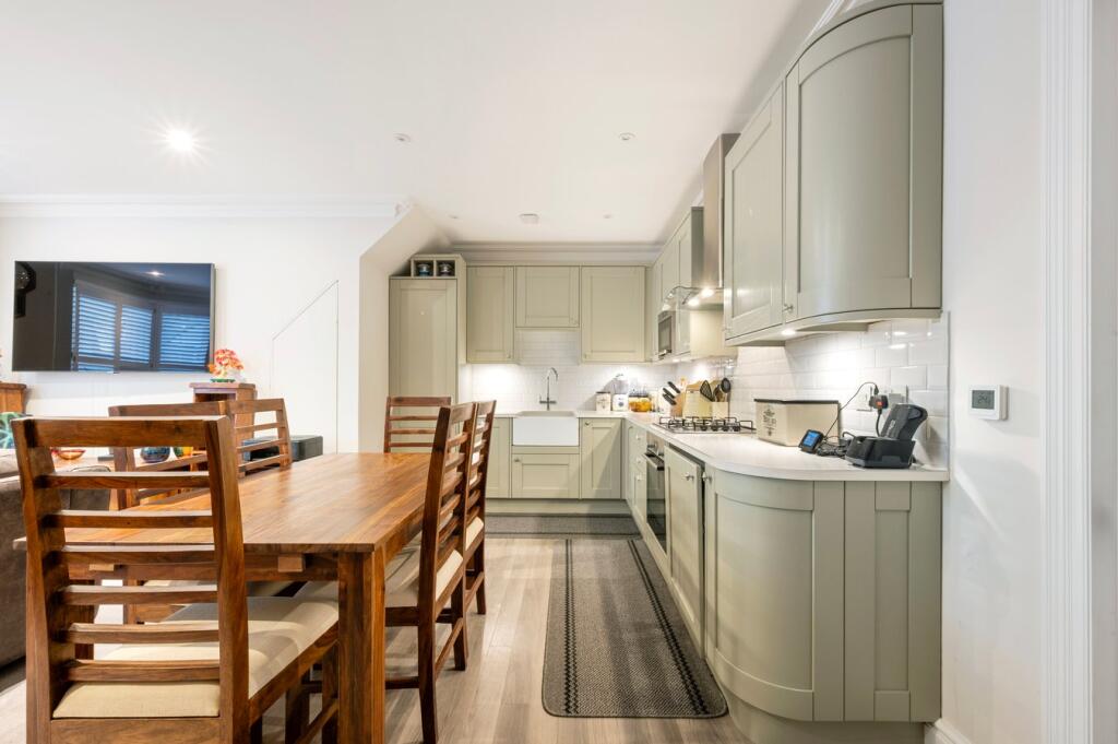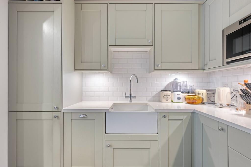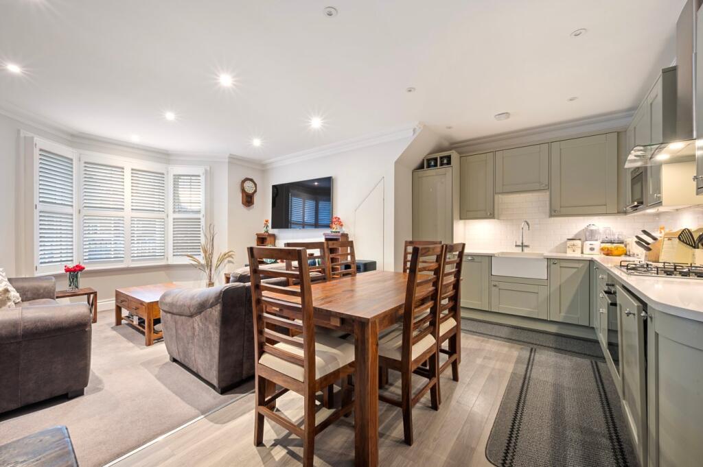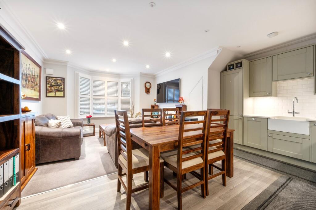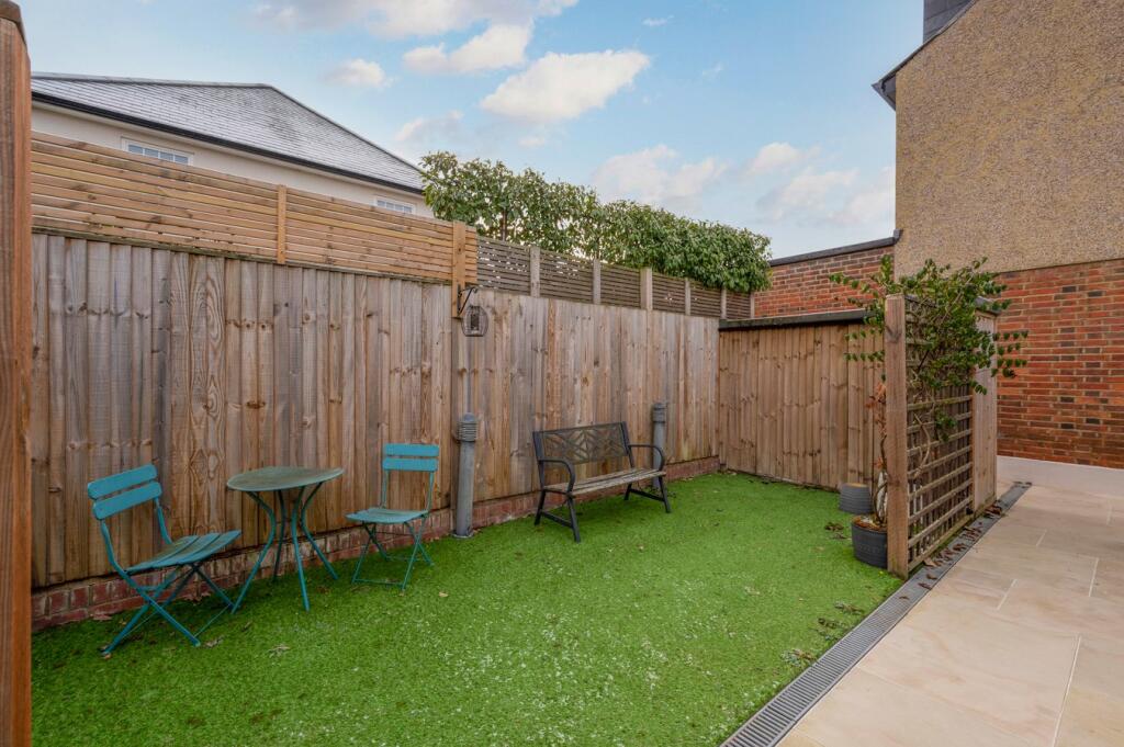 An attractive ground-floor one-bedroom home close to Weybridge High Street and riverside walks, featuring a private entrance, stylish open-plan living, underfloor heating, allocated parking, and share of freehold.