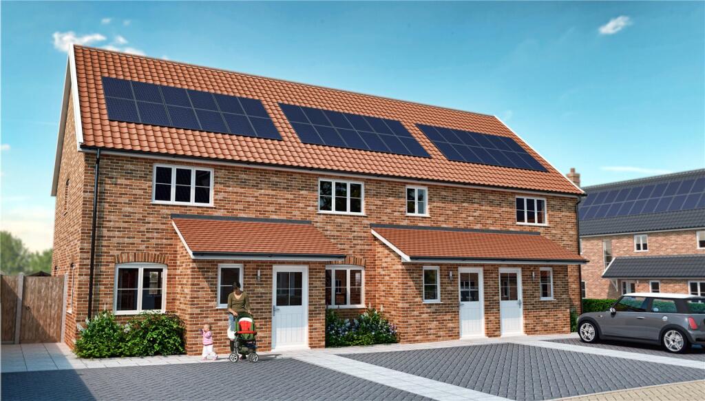 This is a two-bedroom terraced property located on Wellington Road, Eye, Suffolk. The property is listed for £295,000 with Warners Estate Agents. Eye is a desirable market town with good local amenities and schools. The property appears to be in excellent condition, possibly a new build, and includes solar panels. While the plot size isn’t specified, the property seems to have a small garden and driveway. Diss railway station is within a reasonable distance, offering good transport links. Overall, this property presents a good opportunity for buyers seeking a modern home in a well-connected location.
