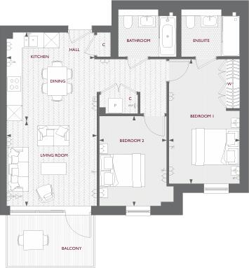 Modern 2-bedroom, 2-bathroom apartment in Tryon House, Royal Exchange, Kingston. Features open-plan living, fully fitted kitchen, master en-suite, second bathroom, and private balcony. Secure entry and convenient location near shops, restaurants, and transport links.