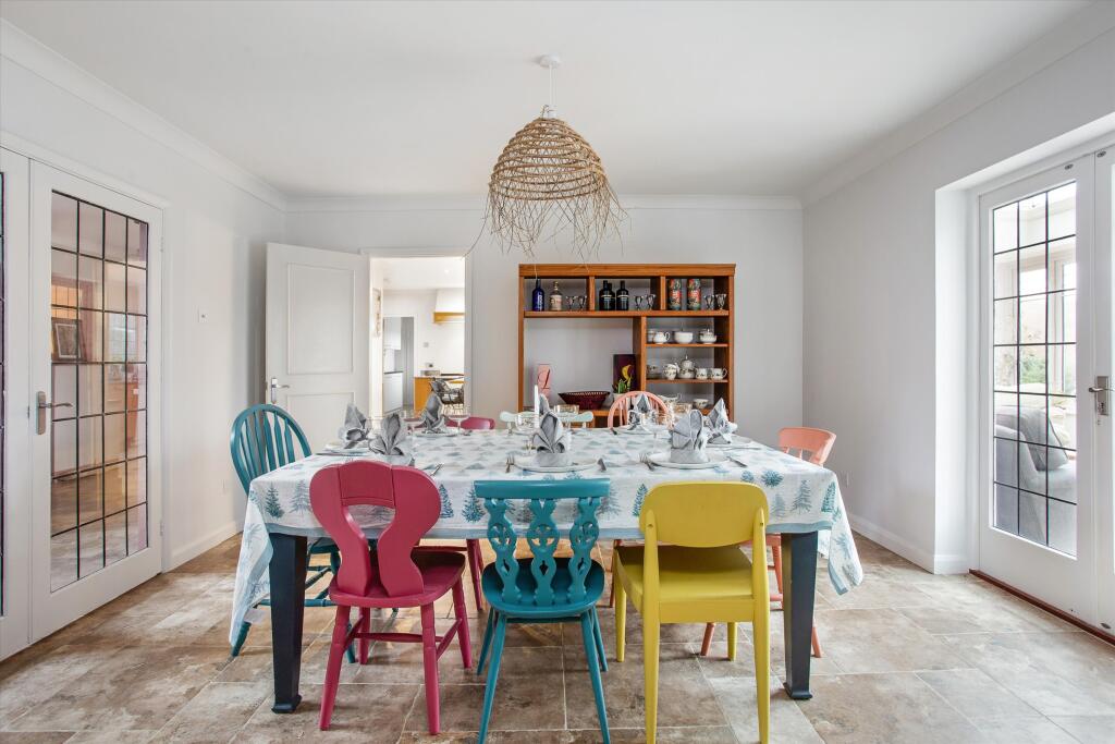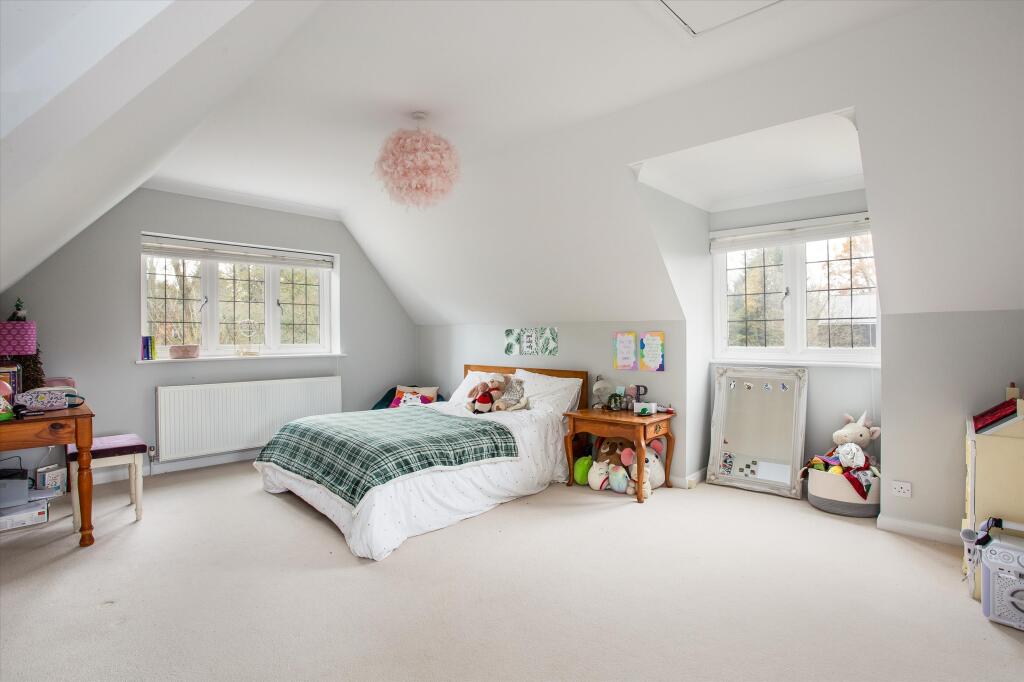 This is a substantial detached property located in the sought-after area of Burchetts Green. The house offers seven bedrooms and three bathrooms, making it suitable for a large family. The property appears to be in good condition, with a modern kitchen and well-maintained interiors. The property benefits from a large garden, providing ample outdoor space. The location is ideal for those seeking a semi-rural lifestyle, with good access to local schools and amenities. The property is listed with Knight Frank.