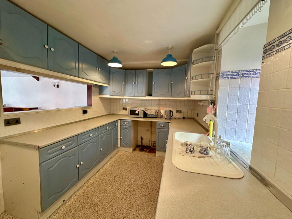 Based on the provided images, the property appears to be in need of some modernisation and updating. The carpets show significant wear, and the kitchen and bathrooms appear dated. While the property has some character features, such as exposed beams, these are not sufficient to offset the need for renovation work. Some cosmetic repairs are also evident on the exterior.