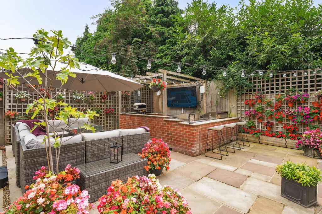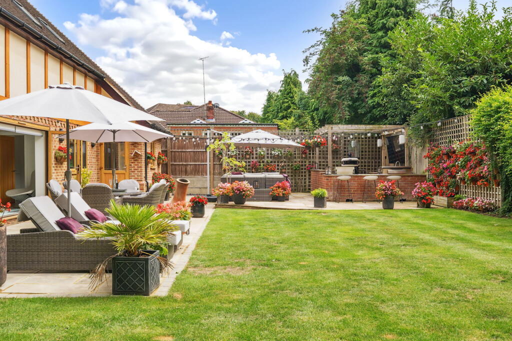A detached property on Wigmore Road, Rainham featuring 4 bedrooms, 3 bathrooms, and a modern interior. The property includes a large garden with an outdoor kitchen. Close to schools and transport links.