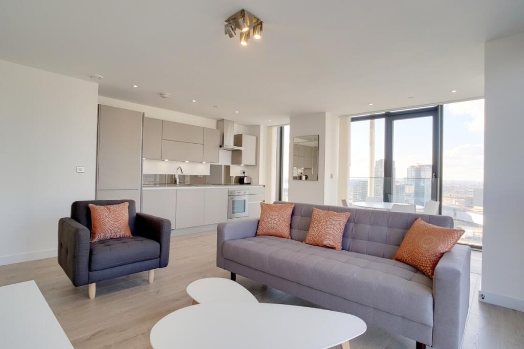 A 12th floor two-bedroom apartment in Stratosphere Tower. Residents benefit from access to a 24 hour concierge service, private residents' roof-top gymnasium and Wi-Fi lounge. Direct transport links servicing The City, Canary Wharf and the West End are readily accessible.