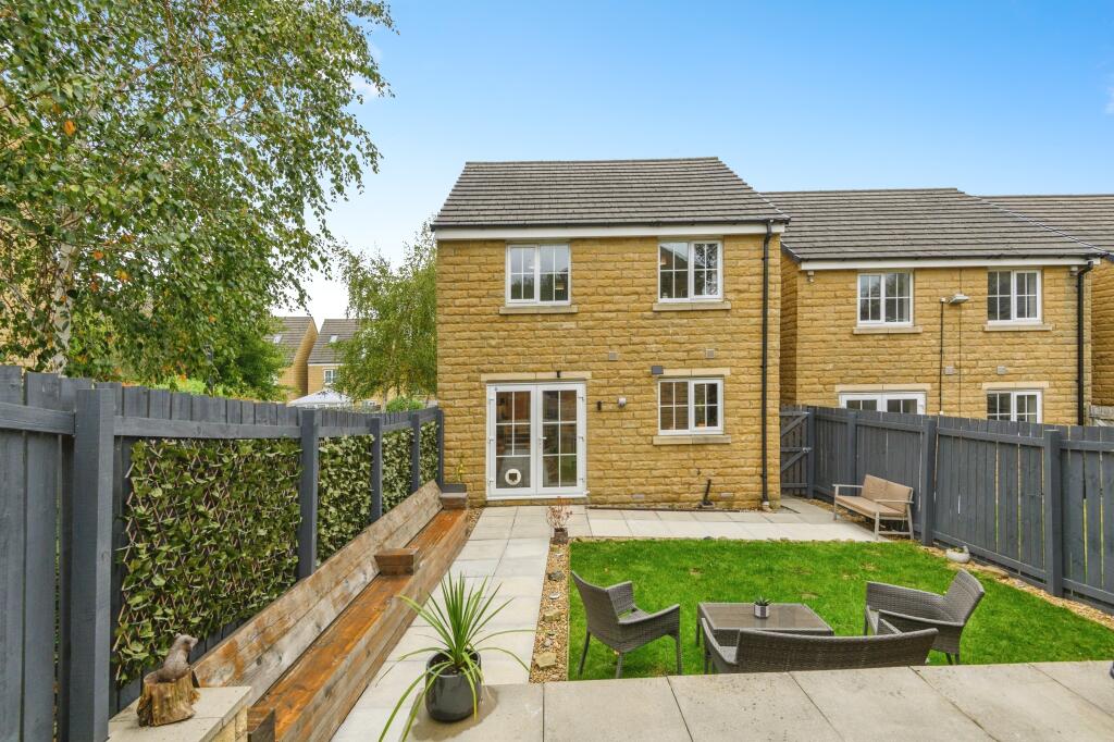 This is a detached property in Huddersfield with three bedrooms and three bathrooms. The property is located close to local schools and transportation links. The property appears to be in good condition, with a modern kitchen and well-maintained bathrooms. The property has a garden with a patio area and a shed. The list price of £250,000 is slightly above the average price in the area, but seems reasonable given the property’s features and location.