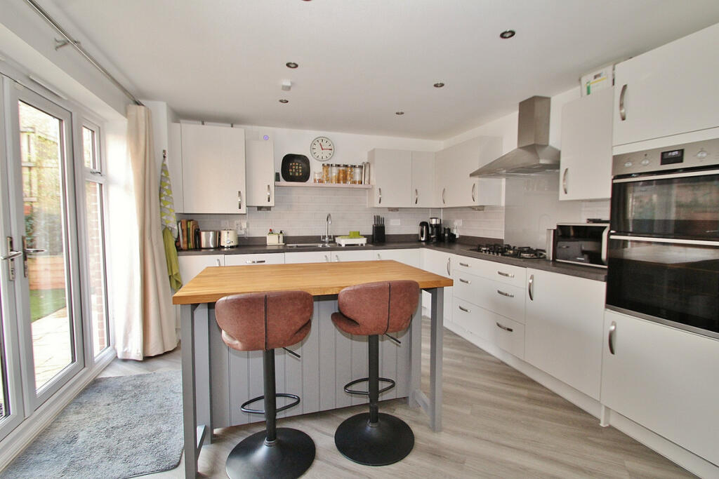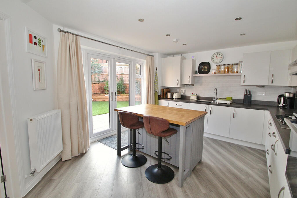 Built in 2021 by David Wilson Homes and forming part of a highly regarded development, a very well presented 4 bedroom detached house. Cloakroom, 2 separate reception rooms, kitchen/breakfast room, en-suite, bathroom, garage , driveway, pleasant gardens