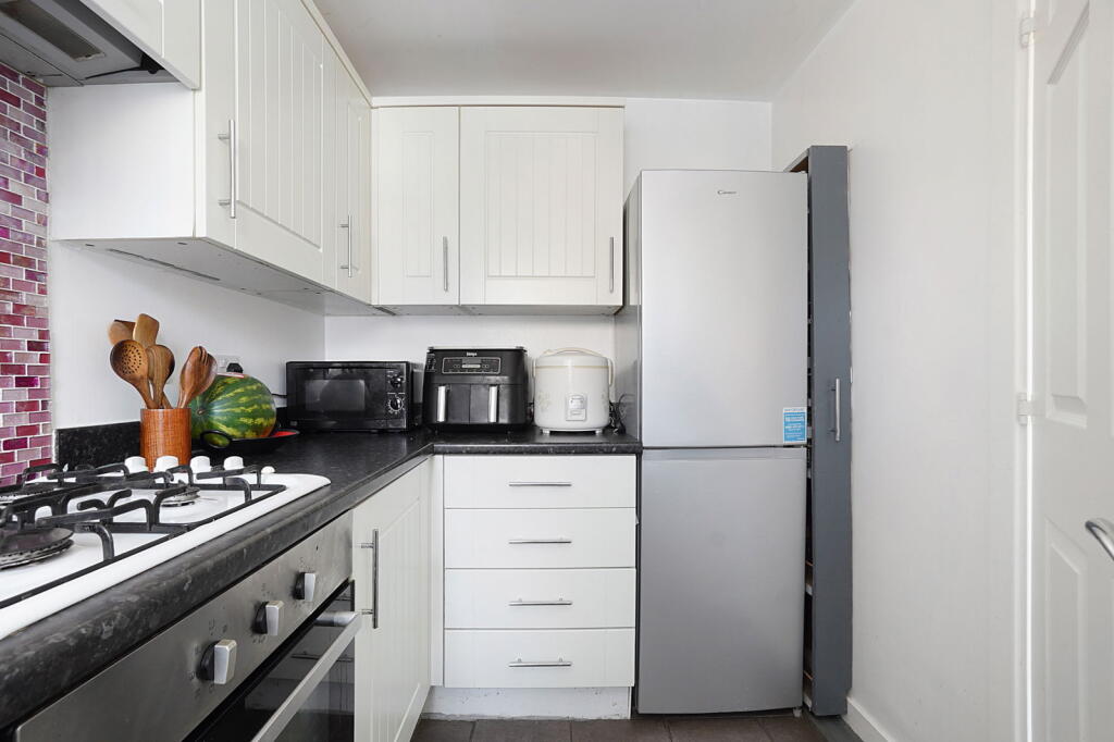 The property is a two-bedroom terraced house located in a convenient location with nearby schools and good transport links. It appears to be in good condition, with modern kitchen appliances and a recently decorated interior. The garden is relatively small. The list price is lower than the average for the area, but the property is smaller than average. More information on the plot size would help assess the value.