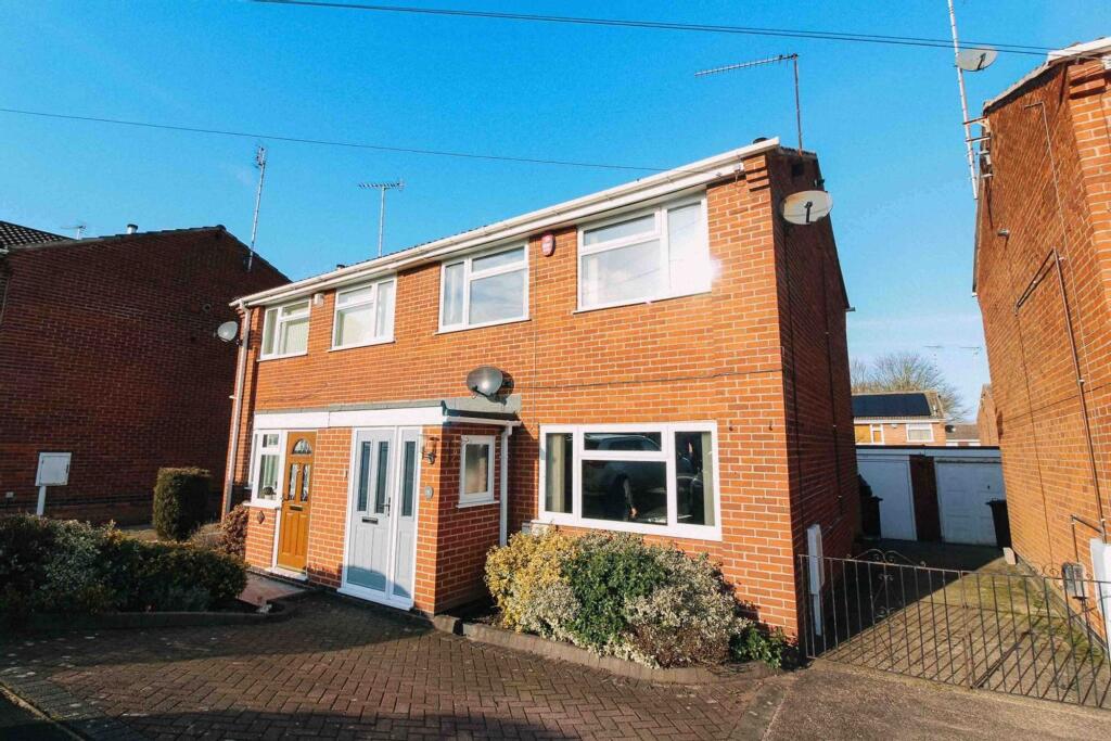 Modern 3-bed semi in a quiet cul-de-sac. Open-plan living, spacious rooms, enclosed garden, parking, garage. Close to schools, shops, and transport links. Perfect for family living!