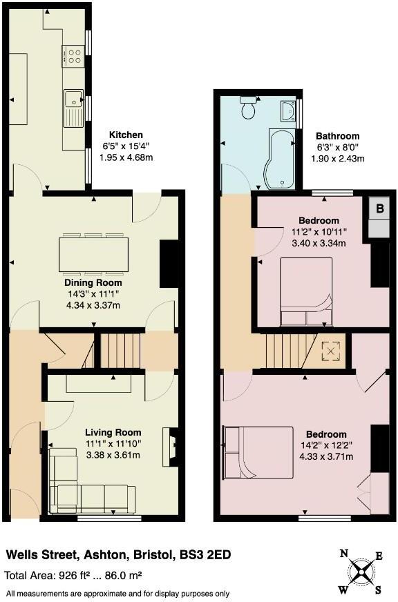 Nestled on Wells Street in the vibrant city of Bristol, this charming mid-terrace house offers a delightful blend of character and modern living. Built in 1880, this extended two-bedroom home boasts a generous 926 square feet of well-designed space, making it an ideal choice for families or profe...