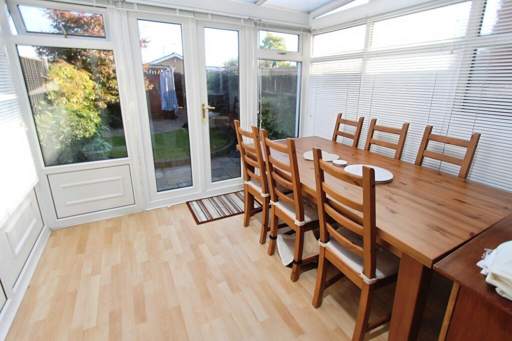 Based on the provided images, the property appears to be in good condition. The kitchen and bathroom are modern and well-maintained. The living areas are clean and tidy, and the garden is well-kept. There is evidence of a conservatory and a garage. There is no obvious need for major renovations.