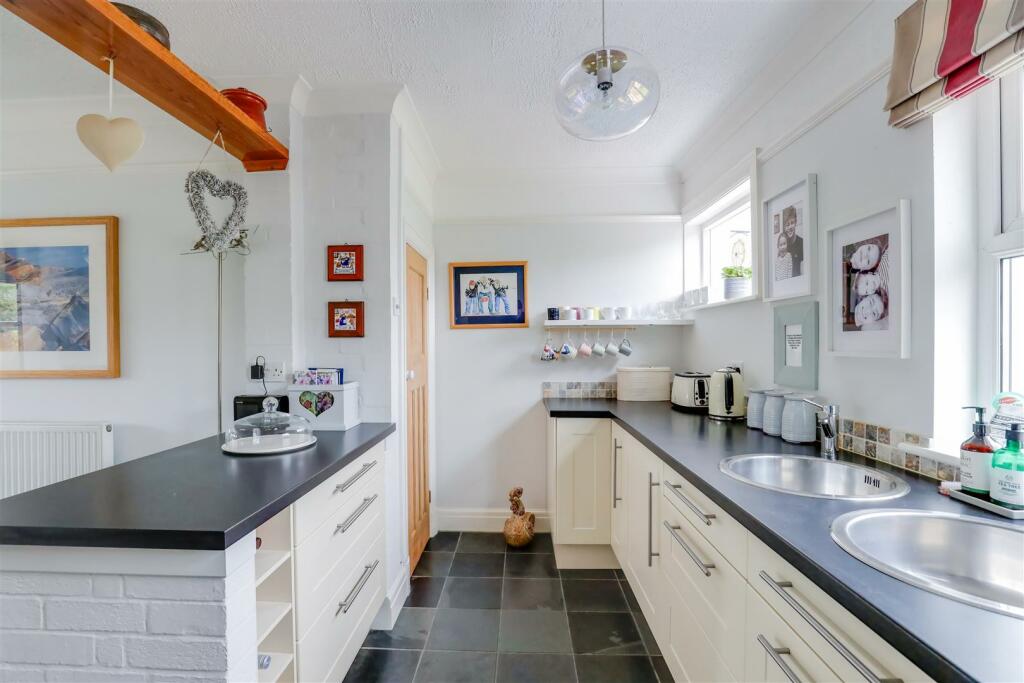 Desmar House is a four-bedroom detached family home located on Boverton Road in Llantwit Major, Vale of Glamorgan. The property is marketed as a well-presented and spacious home with the advantage of a self-contained annexe. Its proximity to the town centre and local schools is highlighted as a key benefit, and the coastal location is an attractive feature for many buyers. The photographs reveal a property that appears well-maintained both internally and externally. The kitchen has been updated to a modern, clean, and functional design. The garden is of a good size, featuring a lawn, patio and shed. The overall impression from the photos is that the house is comfortable and inviting.