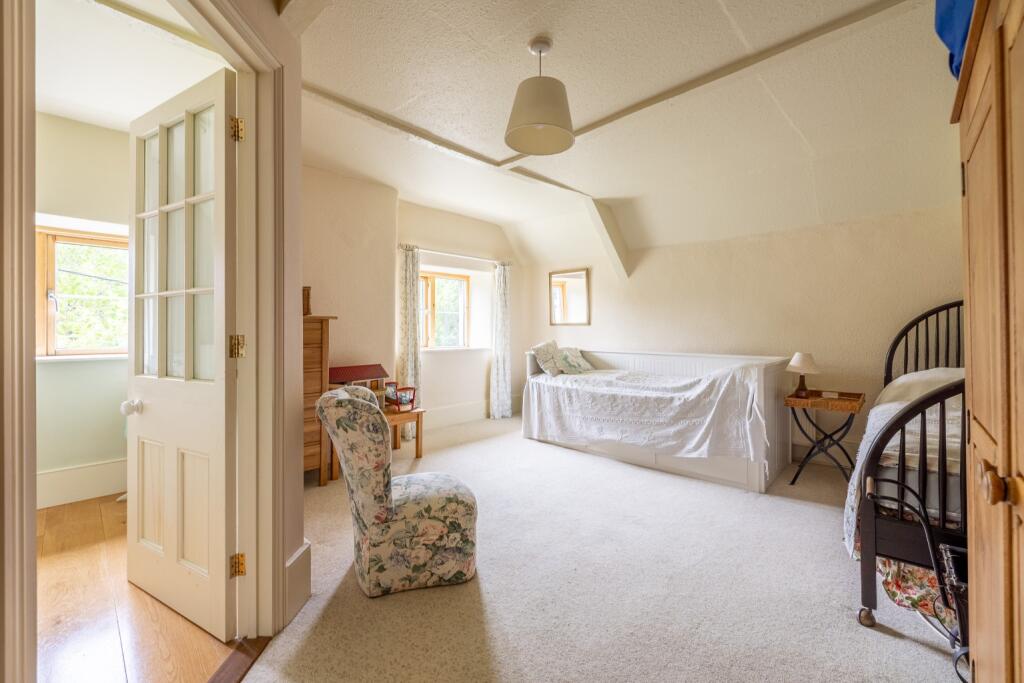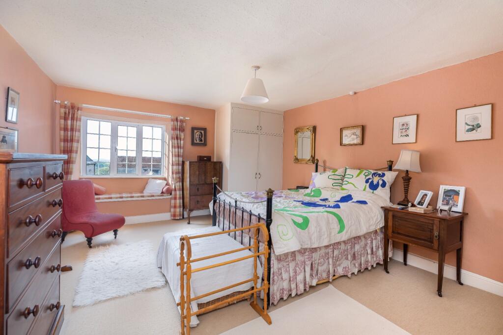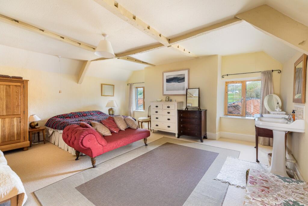 A rare opportunity to acquire a traditional, double fronted farmhouse with annexe, studio, additional outbuildings and approx 3.3 acres of garden, orchard and pasture. Located a mile from Wells in exquisite countryside.