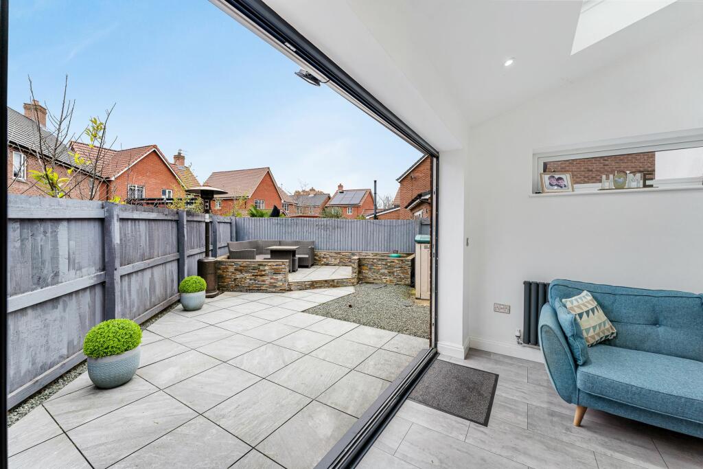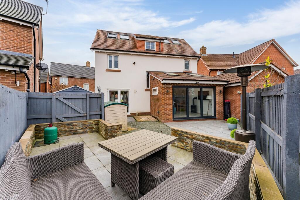 This five-bedroom, three-bathroom detached house located on King Oswald Crescent in Widnes, Cheshire is presented in excellent condition following renovation and extension. The property benefits from a modern, contemporary interior design throughout with new kitchen, bathrooms, and added living space. The extension incorporates bi-fold doors that open to a paved patio area and a relatively small, but well-maintained, garden. The property’s location in Birchfield places it within reasonable proximity to well-regarded primary schools and Widnes train station, making it potentially appealing to families seeking a convenient location. However, additional information on local amenities and the precise size of the plot would allow for a more comprehensive assessment. The list price of £375,000 appears reasonable considering the extensive renovations and the range of prices for similar properties in the area; although a lack of comparable square footage data makes a definitive conclusion difficult. Overall, this property offers a desirable modern family home, though the comparatively smaller garden and lack of detailed information about the immediate neighborhood slightly limits its overall attractiveness.