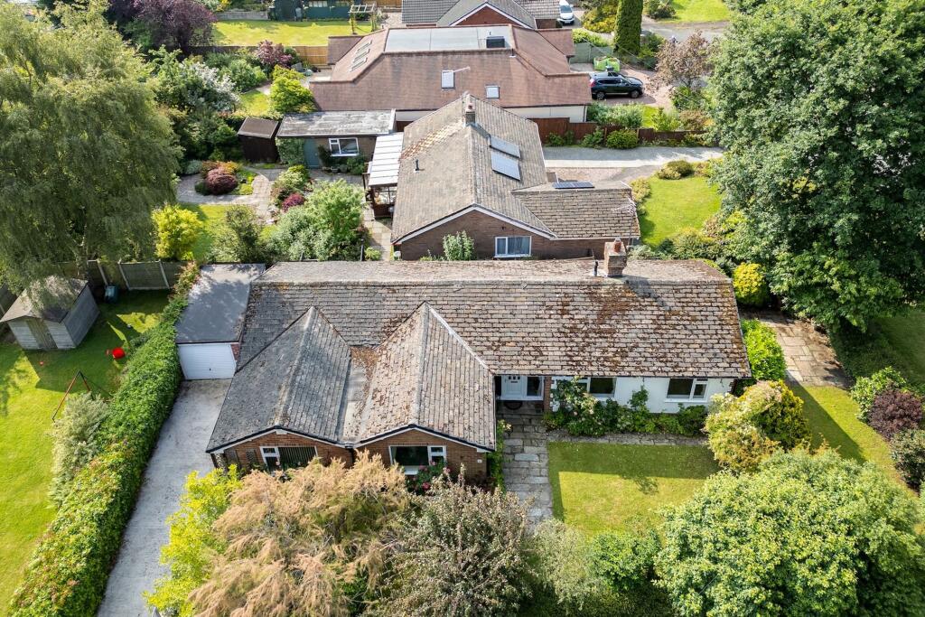 Spacious 4-bed bungalow in sought-after Christleton. Tranquil location with established gardens, southerly-facing lawn, and private patio. Versatile layout, study, en-suite, garage, and no chain.