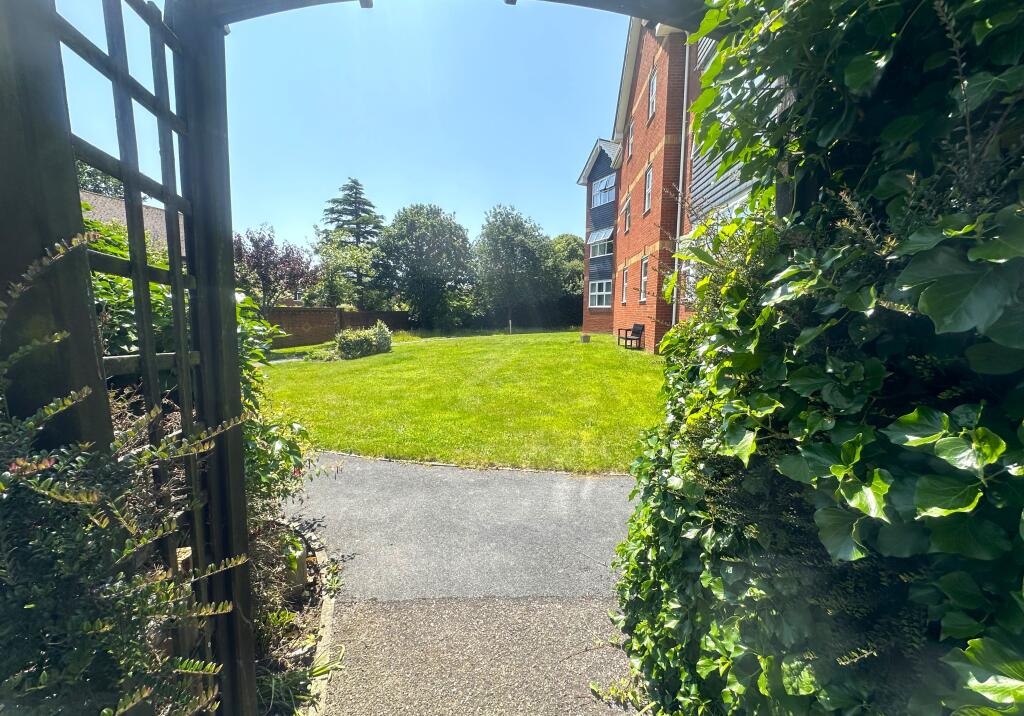 The property includes a communal garden area, which is a positive feature. The size of this garden is not specified, however, the images show a sizeable green space.