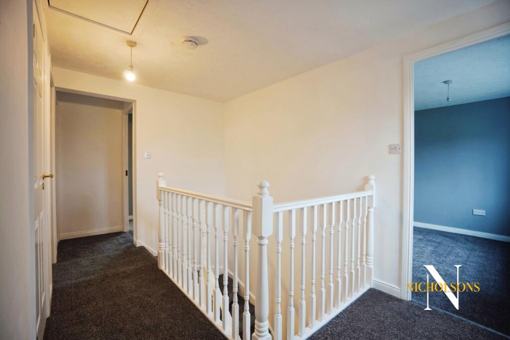 This four-bedroom, two-bathroom detached house located in Worksop South, Nottinghamshire, is presented by Nicholsons estate agents. The property benefits from a substantial plot size, which is described as possibly the largest on Birchfield Drive. This spacious garden includes lawn, patio, and decking areas.