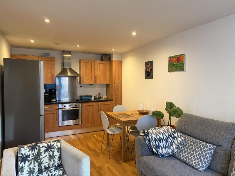 The property is a one-bedroom apartment located in the Gateway West development in Leeds City Centre. The apartment appears to be in good condition based on the provided photos, with a modern kitchen and bathroom. While the apartment itself is relatively small (357.79 sqft), it benefits from being part of a development with amenities such as a gym and 24-hour concierge/security. The location is convenient, with good access to Leeds City Centre and various transportation links. However, the lack of outdoor space (0.00 sqft plot size) is a notable drawback. Considering the average price per sqft in the area (£346) and the prices of comparable properties in the development, the list price of £140,000 appears to be reasonable, potentially even slightly below average for a similar property in this location.