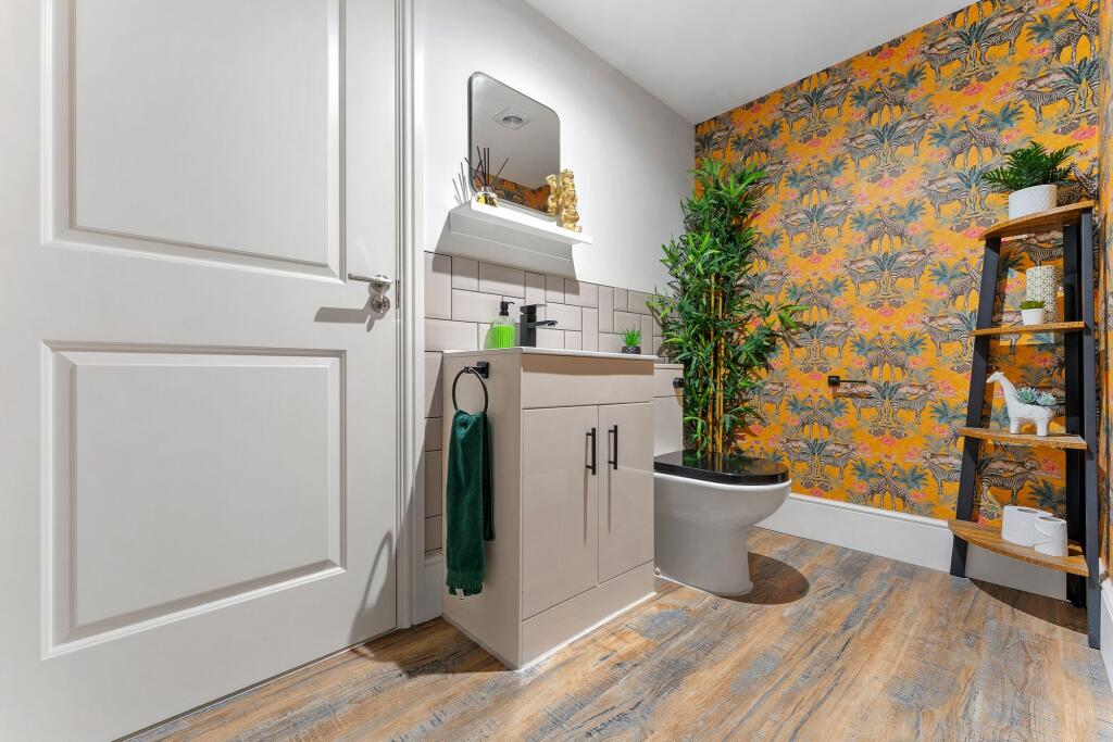 This semi-detached property on Brooklands Avenue, Leigh, offers four bedrooms and four bathrooms. The interior showcases modern design elements and updated fixtures, particularly in the kitchen and bathrooms. A well-maintained garden with a shed and patio enhances the property’s appeal.