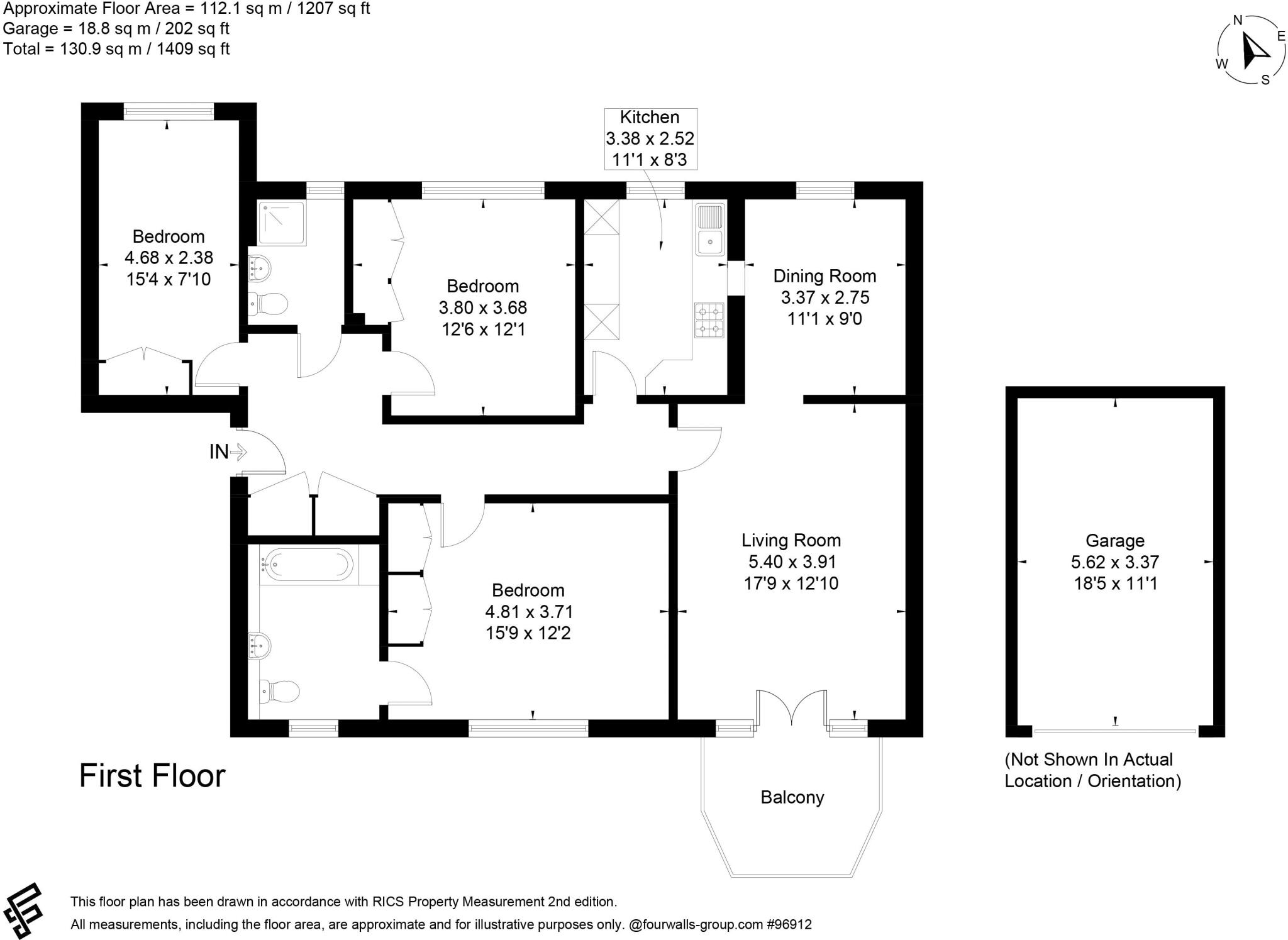 A spacious 3-bedroom flat in Horsham, West Sussex. The property is located near Christs Hospital train station and several schools. The flat is in good condition, though the style is traditional and the kitchen and bathrooms could benefit from modernisation. The property includes access to communal gardens and a garage.