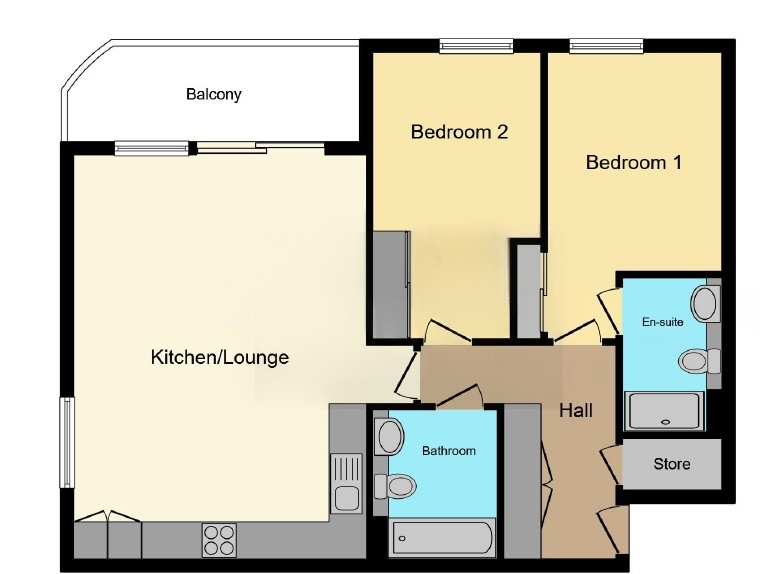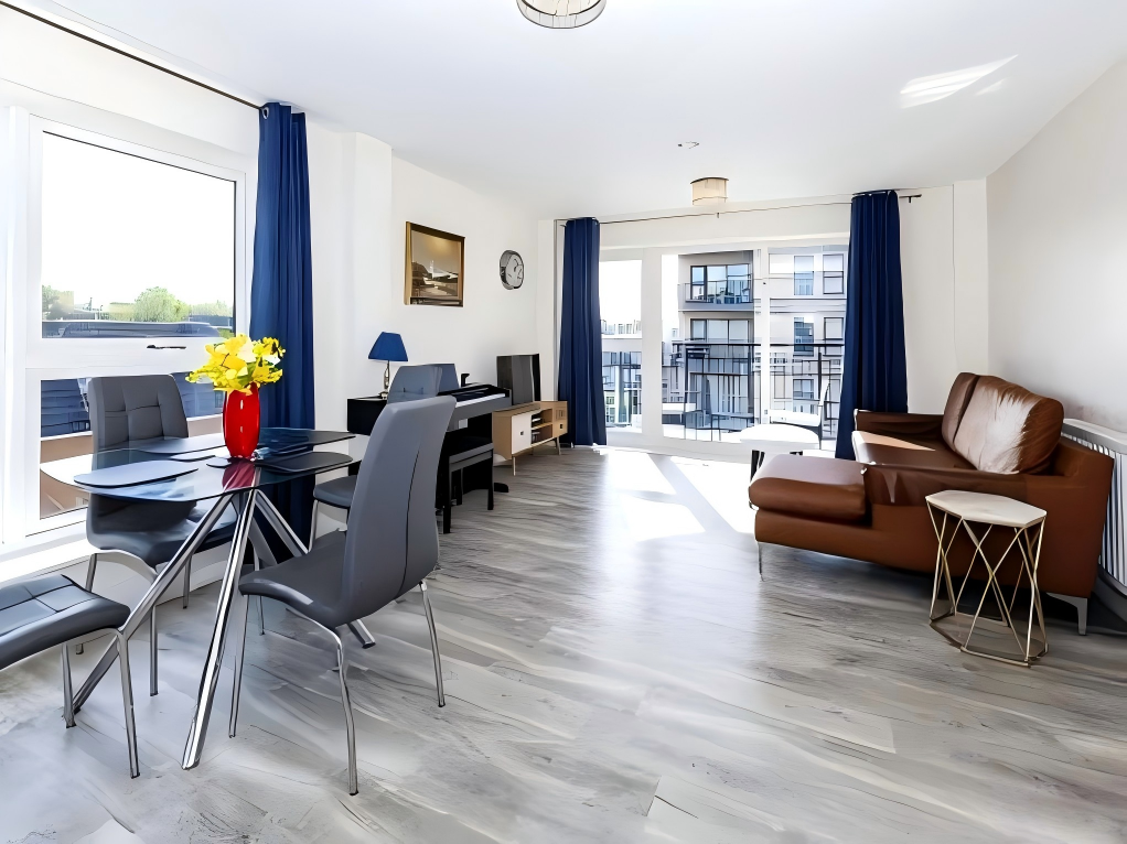 A modern two-bedroom, two-bathroom apartment in a stylish development with lift access. Features include an open-plan living area with sleek fitted kitchen, private balconies, principal en-suite, and family bathroom. Bright, spacious, and move-in ready, ideal for professionals or investors. Open for