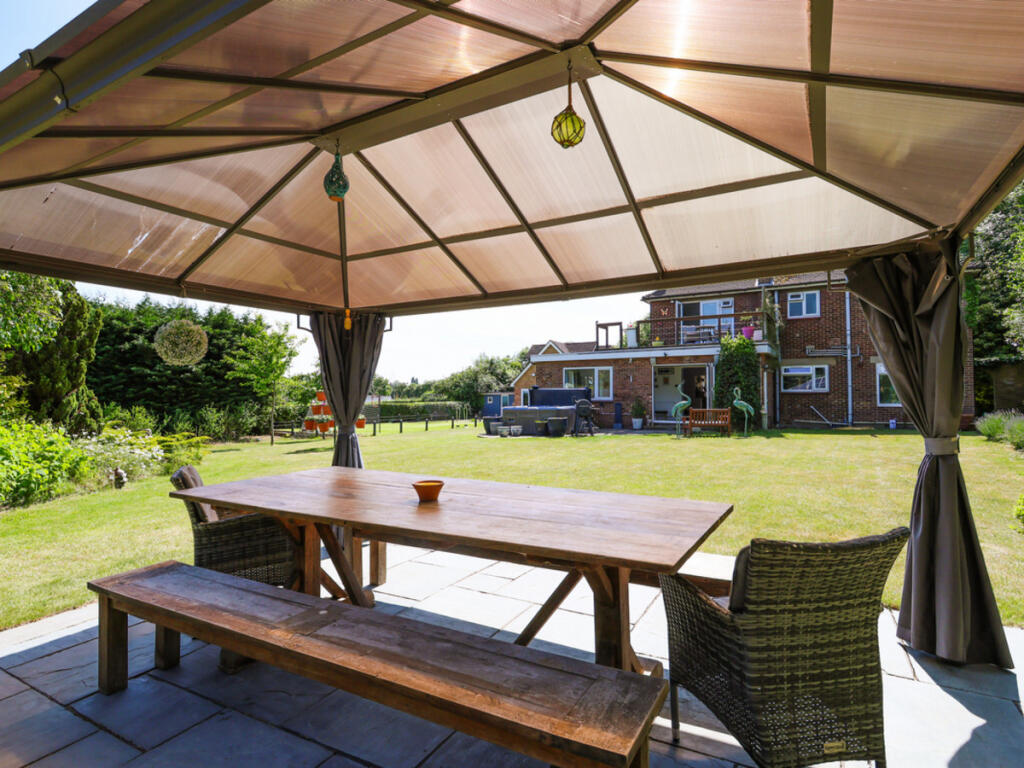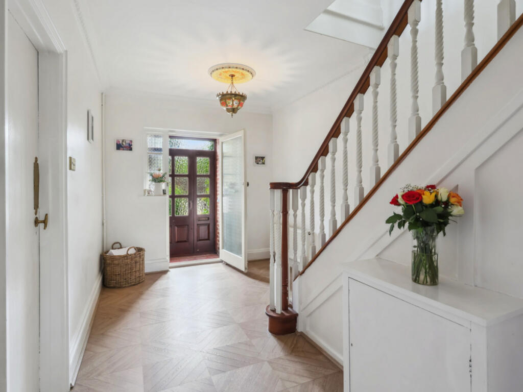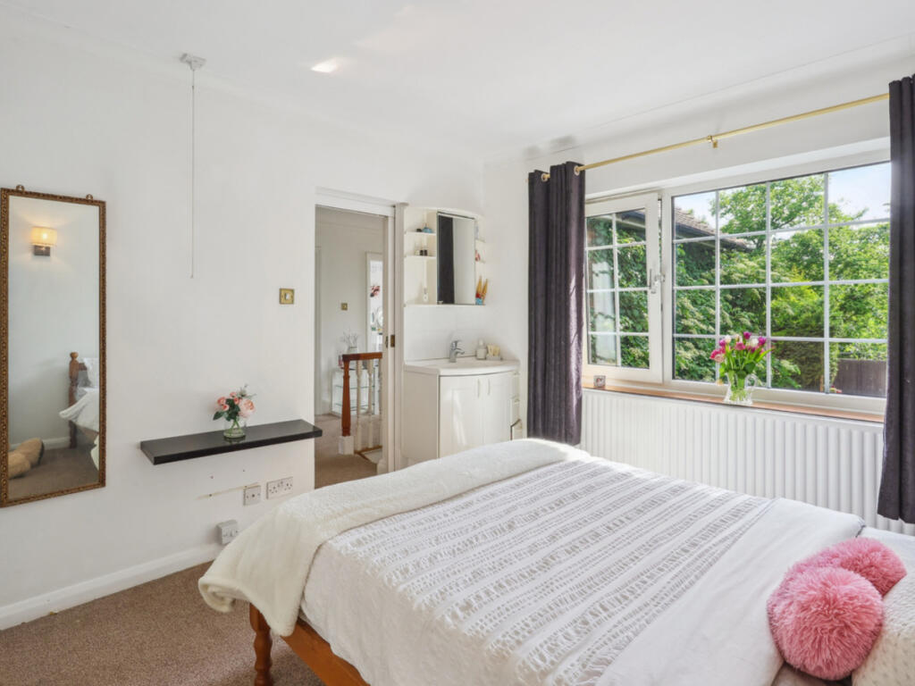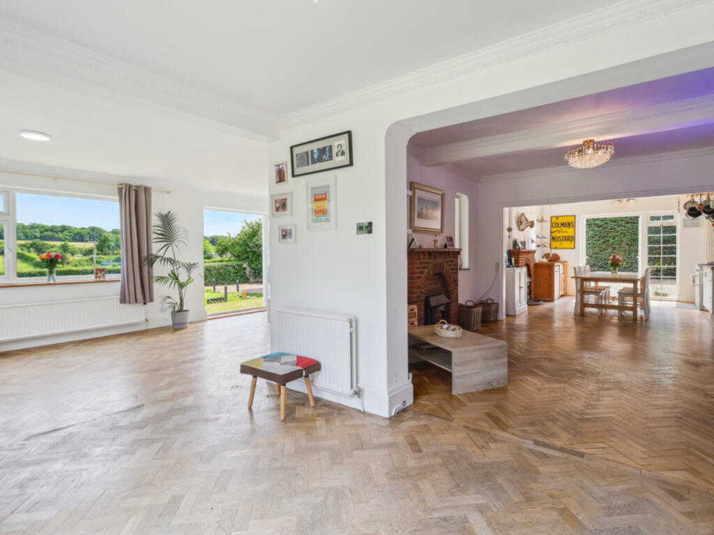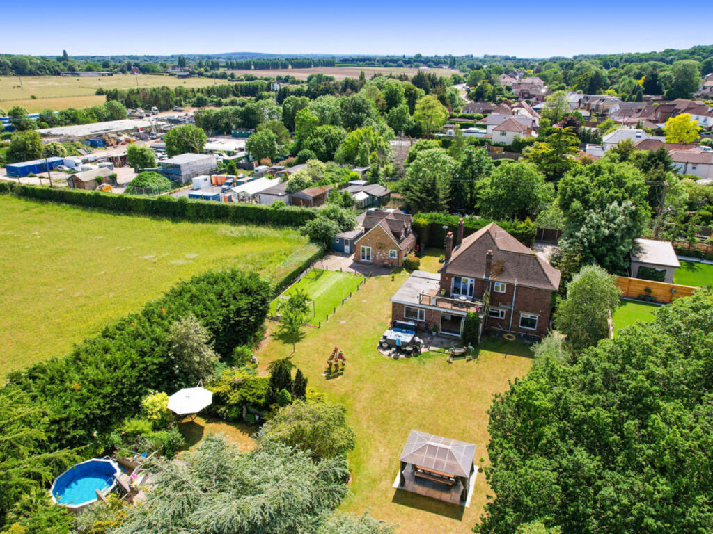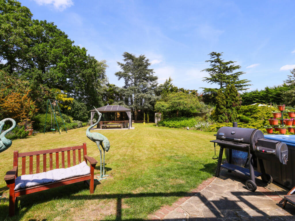 Harding Green presents this exceptional chain-free six-bedroom home on prestigious Birchwood Road. Set on just under half an acre with landscaped gardens, panoramic views over Rowhill Woodlands, a self-contained annexe, and scope to develop (STPP)