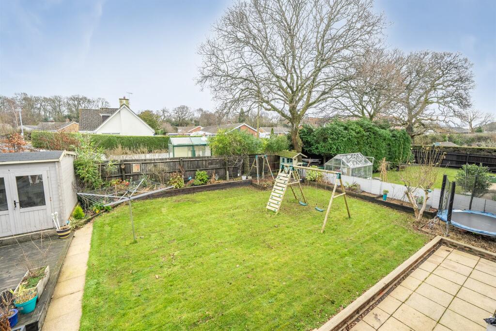 Land: The property includes a sizeable garden, visible in the provided images. The garden appears well-maintained and offers ample space for outdoor activities. The presence of a shed and other garden features further enhances its appeal.
