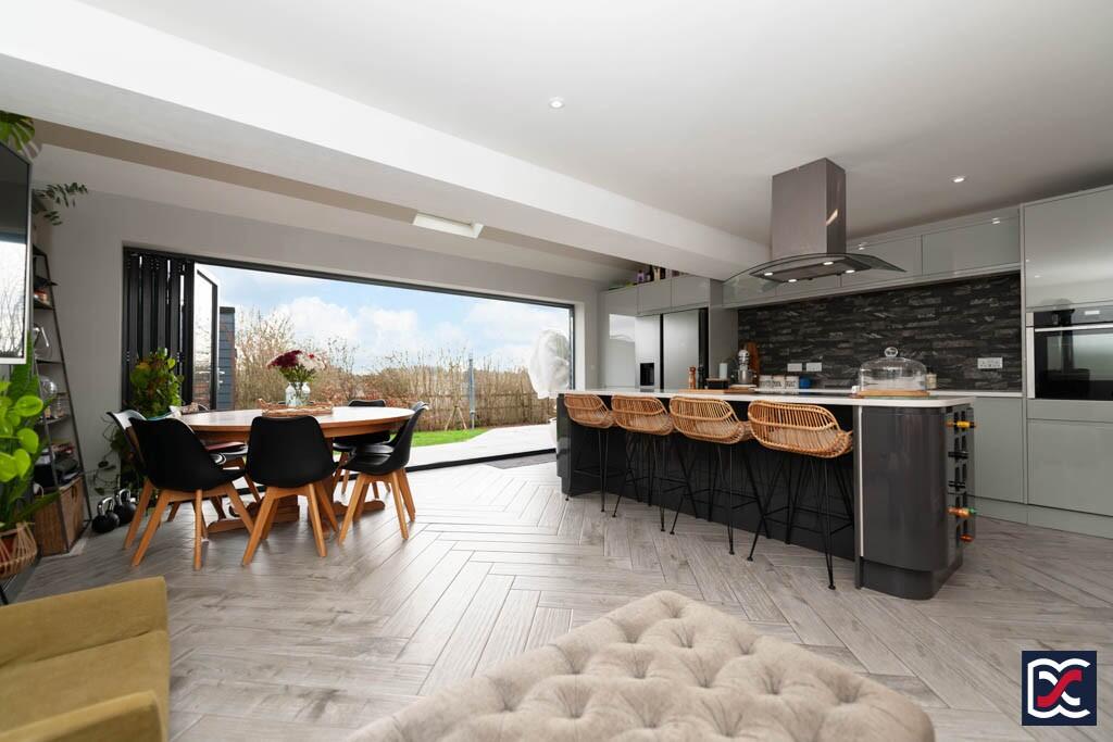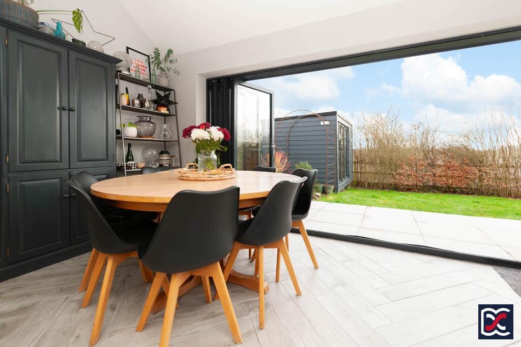 A beautifully presented four-bedroom detached home in an exclusive village development. Features include a spacious open-plan kitchen, dining, and family area with bi-fold doors, a separate sitting room, a versatile home office, a double garage, and enclosed rear garden backing onto open fields.