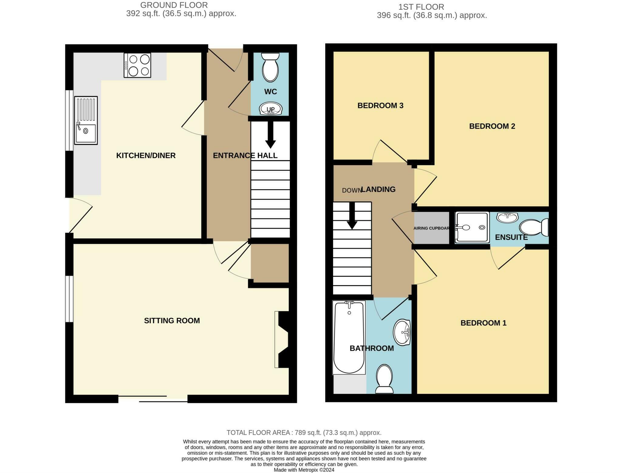 *A well-proportioned three bedroom detached house*Dual aspect living room with double glazed patio doors to the rear*Downstairs cloakroom in addition to a first floor family bathroom and en-suite shower room to the principal bedroom*Attractive gardens to the south and west with views across field...
